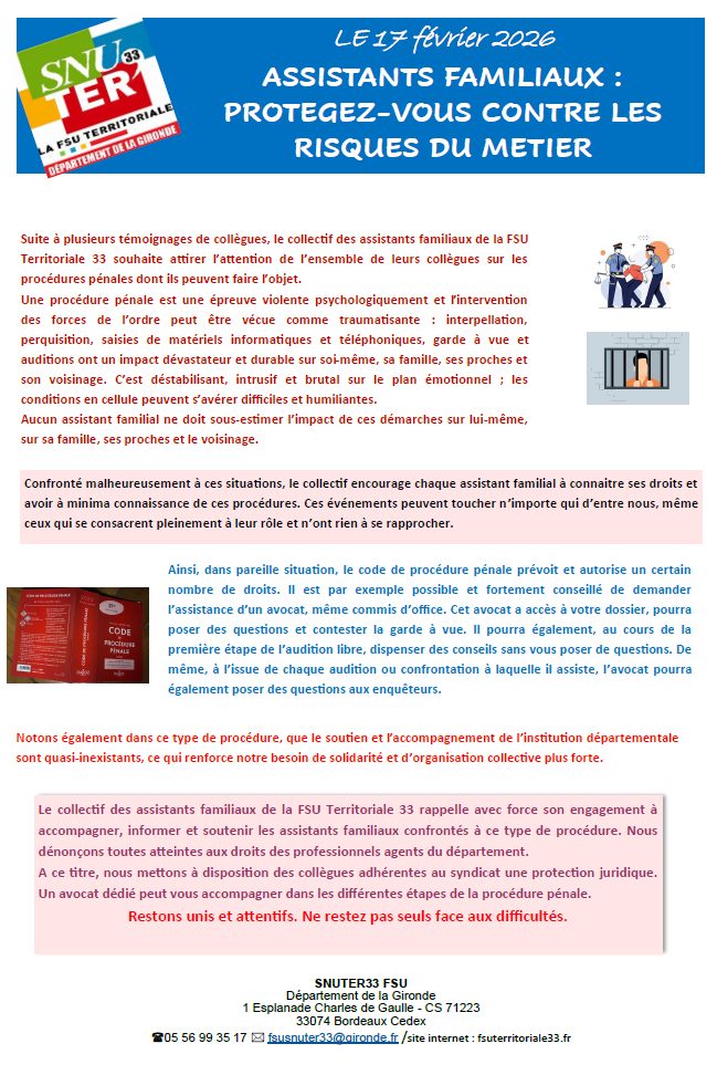 ASSISTANTS FAMILIAUX : PROTEGEZ-VOUS CONTRE LES RISQUES DU METIER par Isabelle Mathieu | Fév 23, 2026 | DGAS, Le Département de la Gironde, Les actualités | 0 commentaires FacebookPost on XFollow usSave Poster le commentaire Annuler la réponseVotre adresse e-mail ne sera pas publiée. Les champs obligatoires sont indiqués avec *Commentaire * Nom * E-mail * Site web Enregistrer mon nom, mon e-mail et mon site dans le navigateur pour mon prochain commentaire. Δ Ce site utilise Akismet pour réduire les indésirables. En savoir plus sur la façon dont les données de vos commentaires sont traitées.