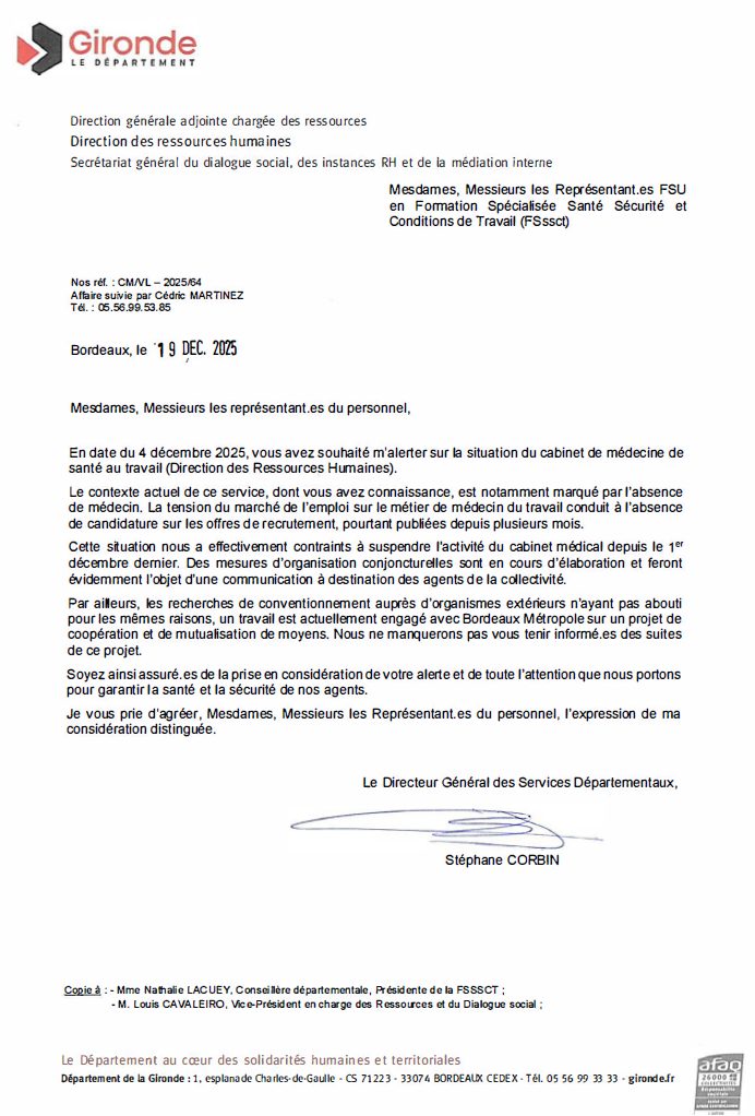 Droit d’alerte cabinet médical & réponse de l’administration par Isabelle Mathieu | Jan 5, 2026 | DROIT D'ALERTE, Le Département de la Gironde, Les actualités | 0 commentaires FacebookPost on XFollow usSave Poster le commentaire Annuler la réponseVotre adresse e-mail ne sera pas publiée. Les champs obligatoires sont indiqués avec *Commentaire * Nom * E-mail * Site web Enregistrer mon nom, mon e-mail et mon site dans le navigateur pour mon prochain commentaire. Δ Ce site utilise Akismet pour réduire les indésirables. En savoir plus sur la façon dont les données de vos commentaires sont traitées.