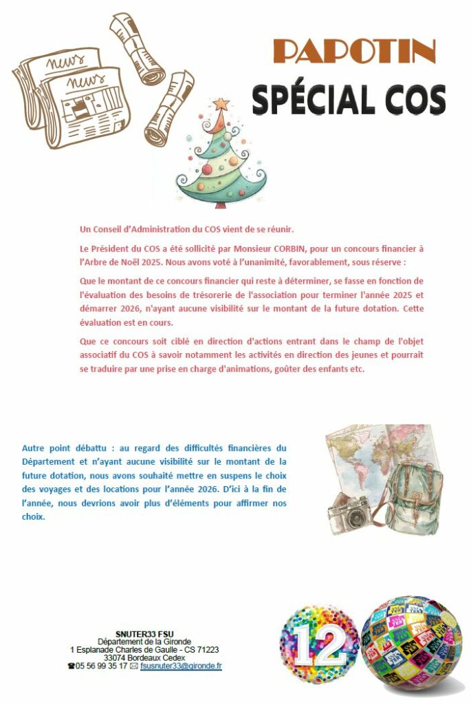 Le PAPOTIN Spécial COS N°12 par Isabelle Mathieu | Nov 5, 2025 | COS, Le Département de la Gironde, Les actualités | 0 commentaires FacebookPost on XFollow usSave Poster le commentaire Annuler la réponseVotre adresse e-mail ne sera pas publiée. Les champs obligatoires sont indiqués avec *Commentaire * Nom * E-mail * Site web Enregistrer mon nom, mon e-mail et mon site dans le navigateur pour mon prochain commentaire. Δ