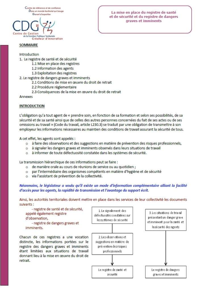 Fiche CDG74 – Le Registre de Santé et Sécurité au Travail (RSST – registre d’observation) : Le registre de dangers graves et imminents